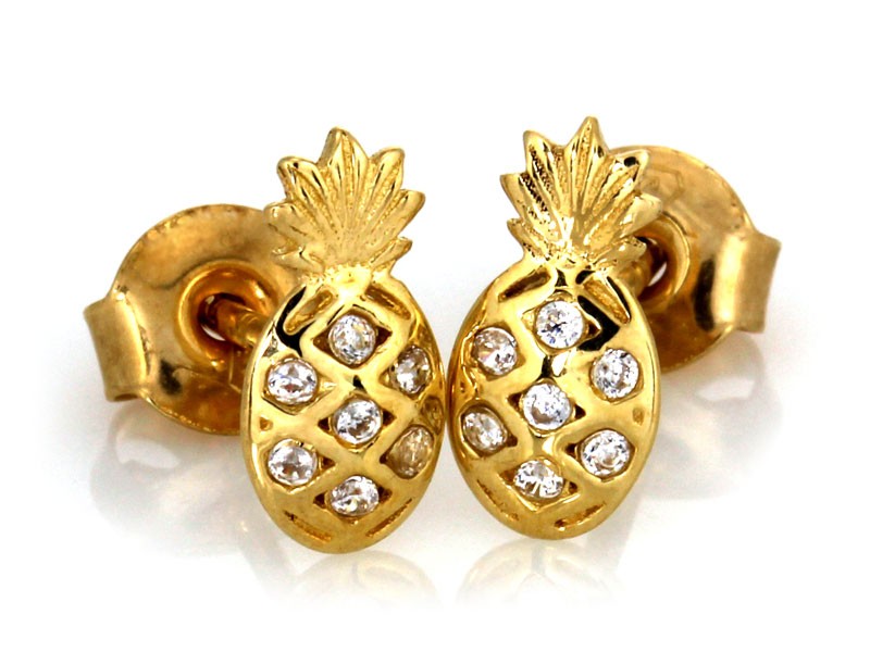 Złote kolczyki sztyfty – ananasy