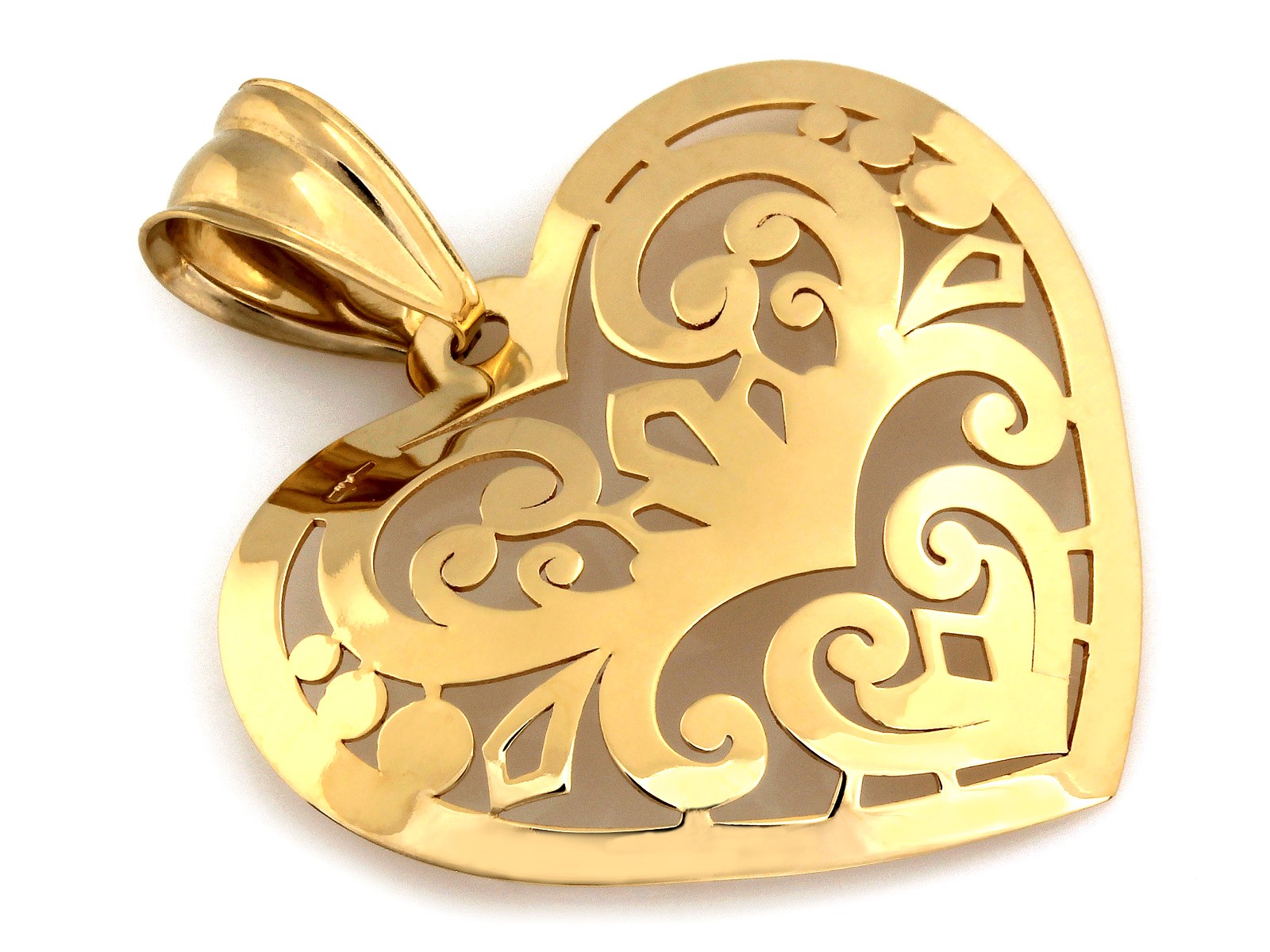 Asortyment: Złota zawieszka na łańcuszek serce ażurowe bogato zdobione
